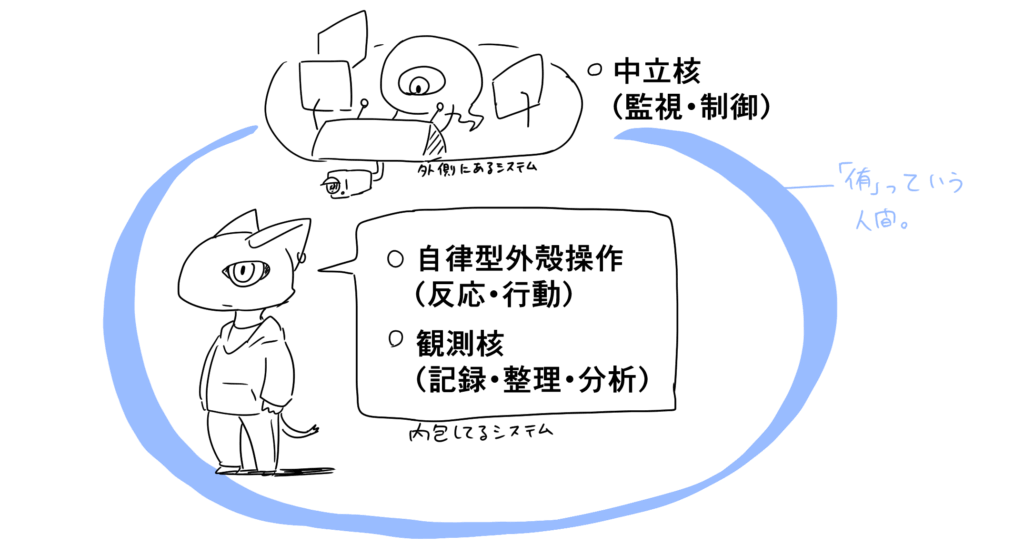 基本的には整合性チェックを担当。観測核の暴走(思考の過加速)を止めるのもここ。